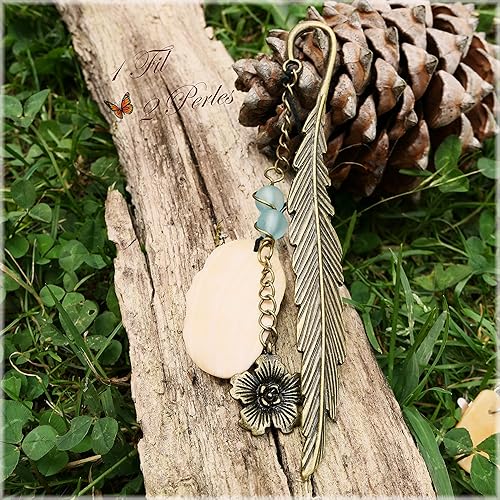 Marque Page Plume Metal Coquillage Perce Et Breloque Fleur