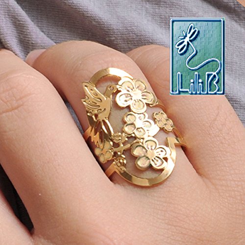 Bague Ovale Colibri Et Dentelle De Fleur Dore A L Or Fin