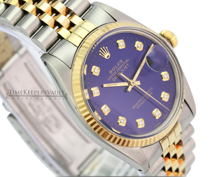 Details Sur Rolex Hommes Datejust 16013 Deux Nuances Argent Cadran Diamant Striee Chaton