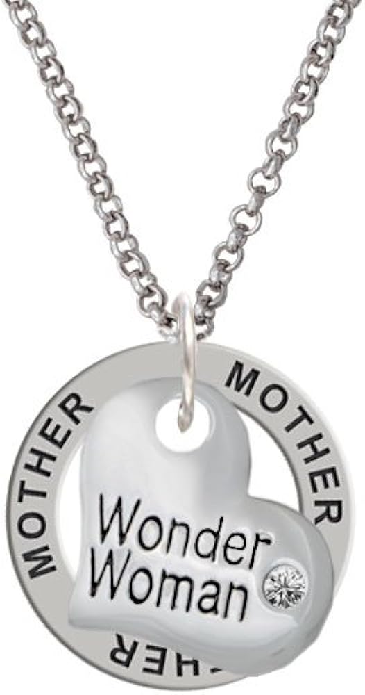 Grand Cœur Wonder Woman Mother Affirmation Bague Collier
