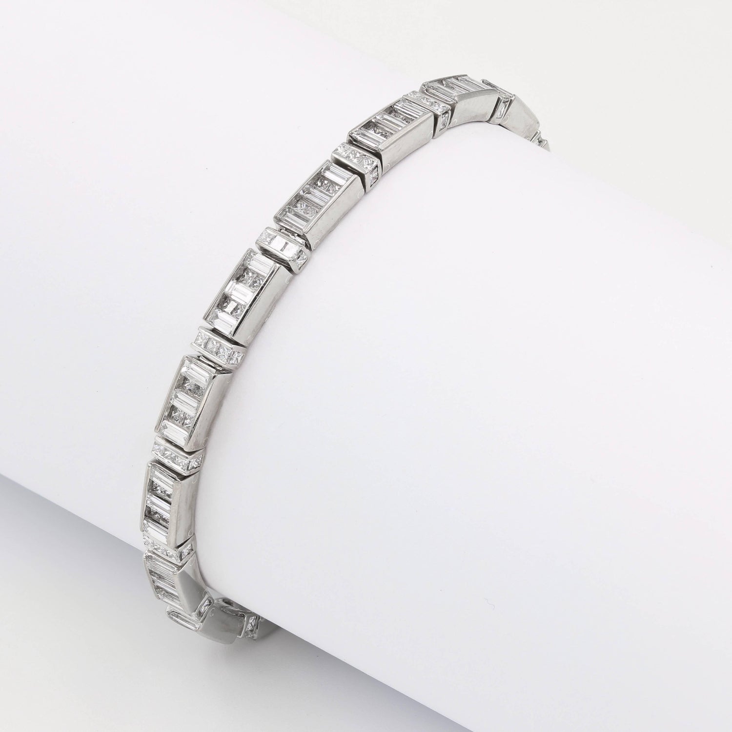 Antique Platinum Tennis Bracelet With Total 16 90 Ct Mix Of Brilliant And Baguette Cut Diamonds Approx 1940 Catawiki