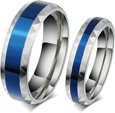 Abellale Bague Couple Original Rhombe Surface Bleu Ligne 6mm
