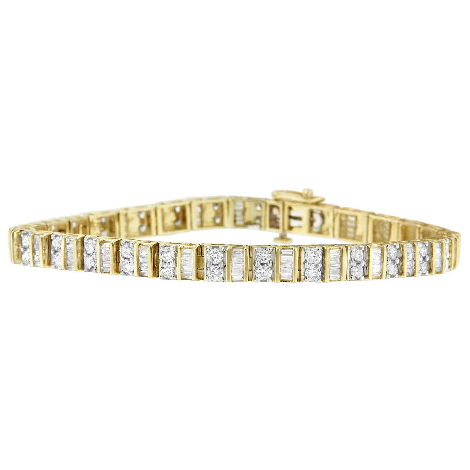 Round And Baguette Cut Diamond Tennis Bracelet In 14k Gold 3 Cttw Gh Color Vs Clarity