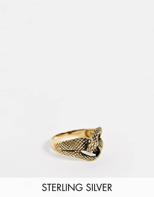 Asos Design Bague En Argent Massif Motif Serpent Enveloppant En Plaque Or 14ct