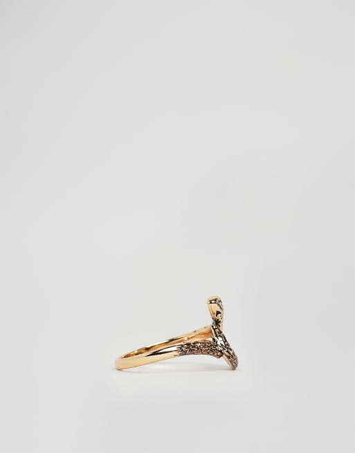 Bague En Plaque Or En Forme De Serpent Et Petits Strass