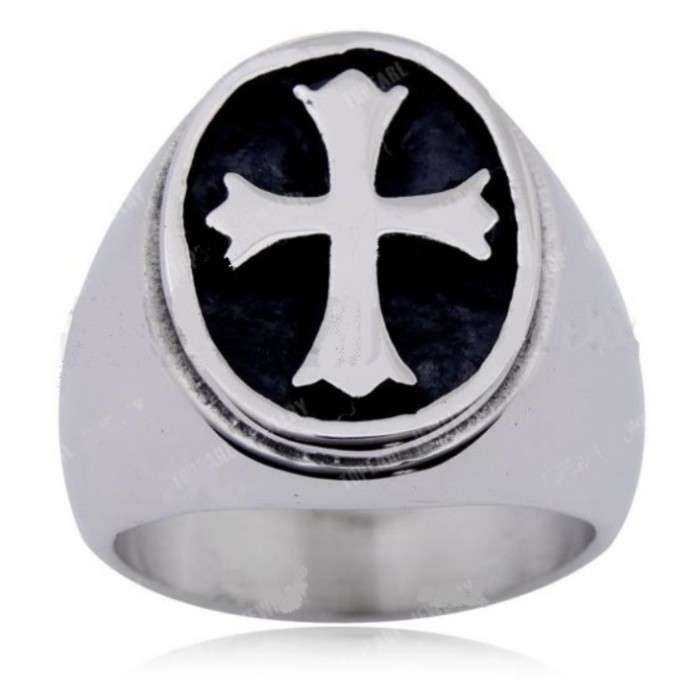 Bague Croix Templier Sur Fond Noir 11us Chevaliere Homme Femme