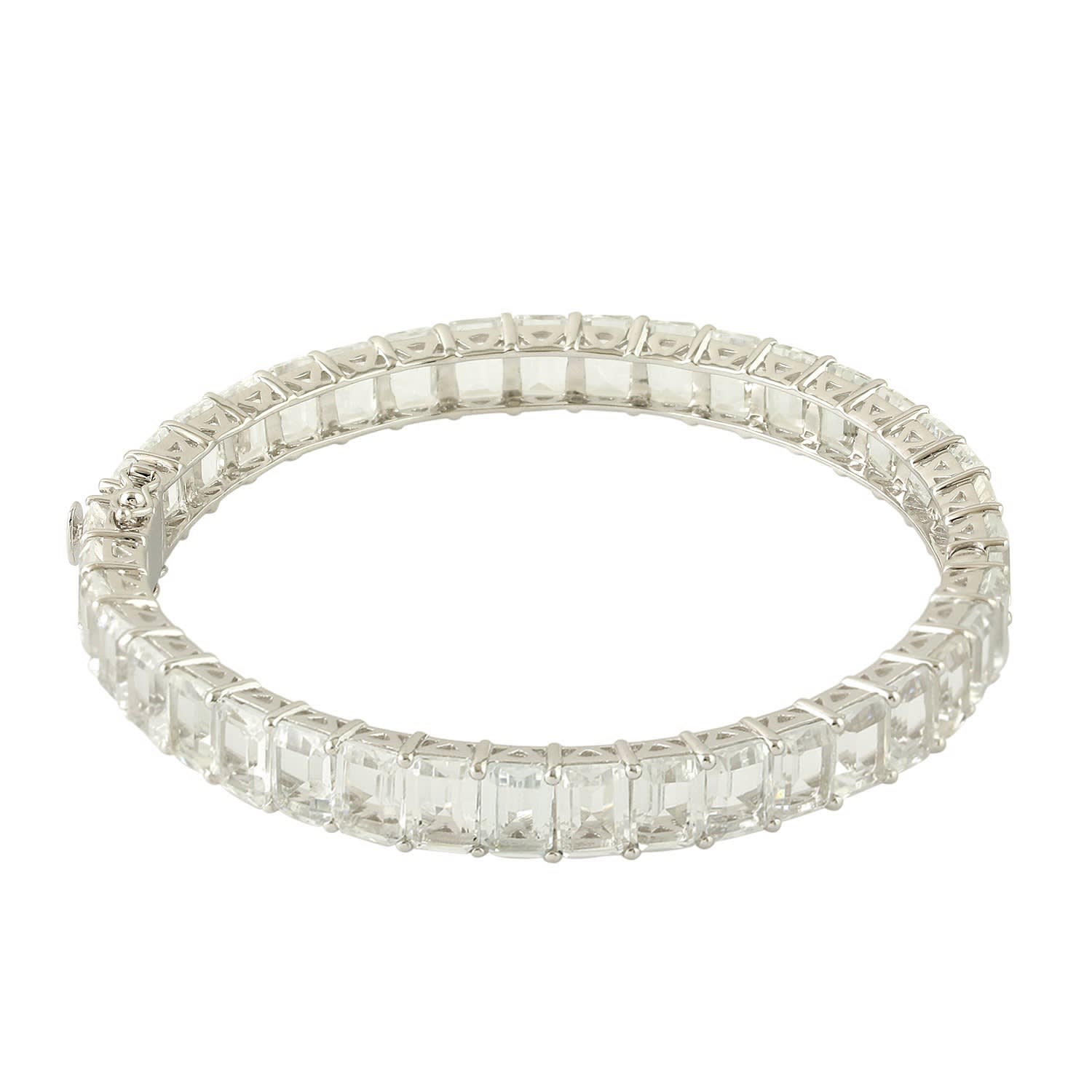 Platinum Plated Baguette Bangle Bracelet Cubic Zirconia