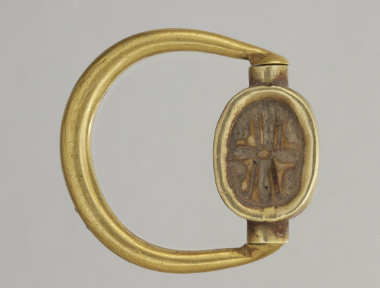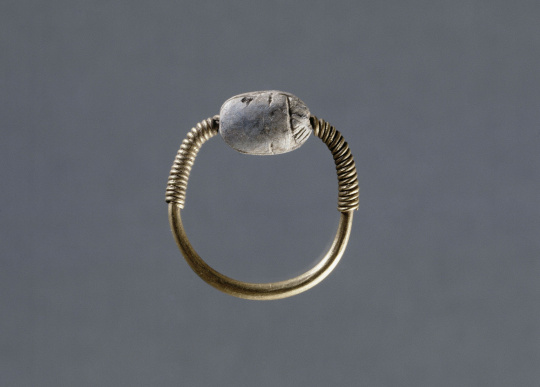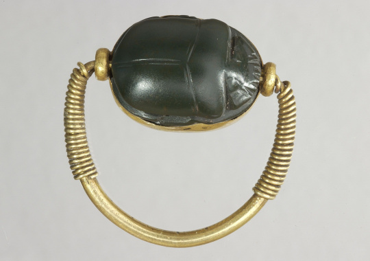 Bague En Or A Scarabee Cercle Embleme D Hathor Periode