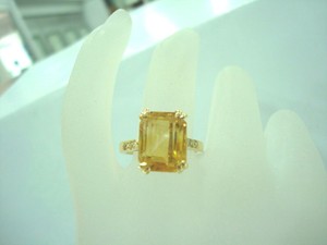 Bague Bijou Or Massif 18 Carats Citrine Topaze Jaune 9 27gr