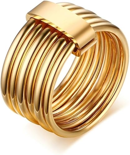 Anazoz Femme Bague Acier Inoxydable Simple Bague Or Argent Or Rose Or Personnalite Geometrique 6 Rangs Multi Rangs Bague Anneau Anniversaire Cadeau