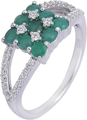 Banithani Argent 925 Emeraude Bague A Pierre Precieuse