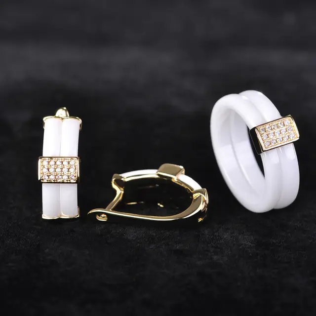 Us 25 5 25 Off Exquisite Ceramic Cz Rhinestone Jewelry Sets Ring Earring Copper Golden Brincos Anillos Femme Bague Boucle D Oreille Bijoux In