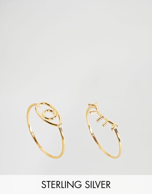 Asos Lot De 2 Bagues Yeux Et Cils En Argent Massif Plaque Or