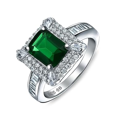 Bling Jewelry Art Deco Style Green Cubic Zirconia Baguette Band Cz Simulated Emerald Cut Engagement Statement Ring 925 Sterling Silver
