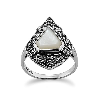 Gemondo Art Deco Style Ring 925 Sterling Silver 1 50ct Mother Of Pearl 0 28ct Marcasite Ring
