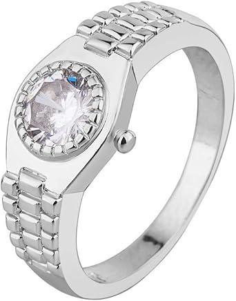Mode Montre Forme Or Argent Couleur Cristal Bague Taille 6